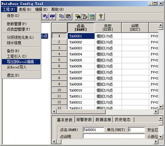 a. 通過(guò)導(dǎo)出功能備份需要分解設(shè)備上的數(shù)據(jù)連接項(xiàng)。進(jìn)入點(diǎn)組態(tài)后,在“工程”菜單中選擇“導(dǎo)出到Excel編輯”對(duì)當(dāng)前工程的組態(tài)進(jìn)行備份。