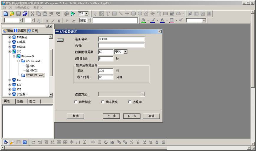 在完成上述操作過(guò)程后,我們就可以利用分解后的驅(qū)動(dòng)重新建議原來(lái)的設(shè)備了。這里以設(shè)備OPC01在,IO驅(qū)動(dòng)OPC01上重新建議為例。