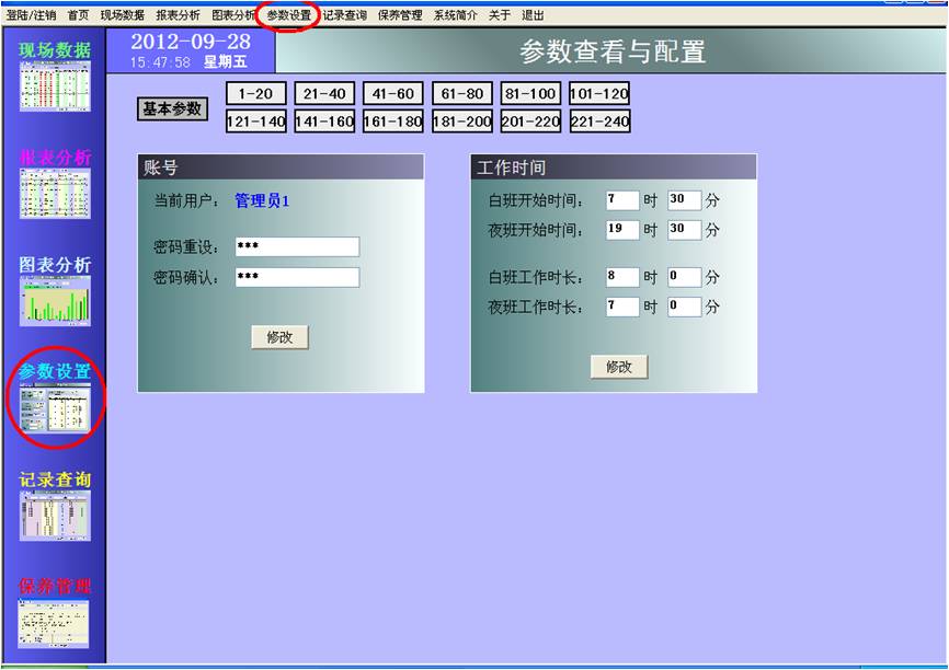 主要用于更改用戶賬號(hào)的密碼,以及設(shè)定全廠的工作時(shí)間安排。