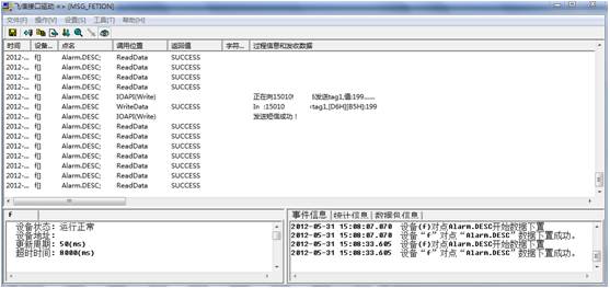 3. 運(yùn)行:系統(tǒng)運(yùn)行后,當(dāng)關(guān)注的報(bào)警發(fā)送時(shí),報(bào)警信息就會(huì)通過(guò)飛信驅(qū)動(dòng)通知給相關(guān)人員,打開(kāi)驅(qū)動(dòng)的顯示窗口可以看到相關(guān)的信息,如下: