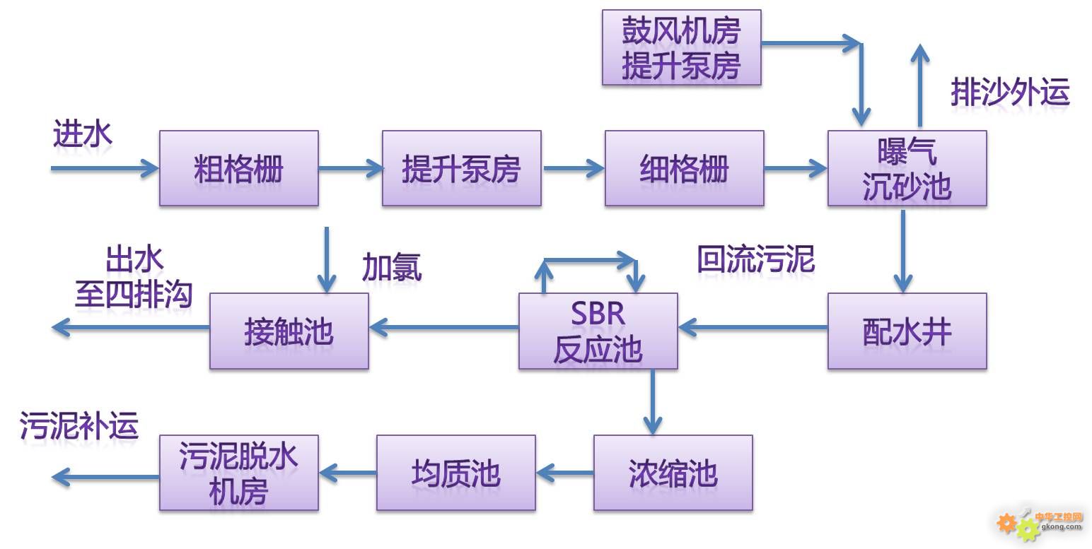 下面以典型污水廠為例,簡要介紹污水處理工藝流程。該污水處理廠是被國家列入“三河三湖”、“渤海碧海”水污染治理的重點項目。日處理污水能力達到4萬噸,污水處理后可達到《城鎮(zhèn)污水處理廠污染物排放標準》一級A標準,排放水質(zhì)可直接用于農(nóng)田灌溉。初步污水處理工藝采用MSBR工藝即序批式活性污泥處理工藝;污泥處理工藝推薦采用帶式濃縮、脫水一體機濃縮脫水;消毒工藝采用紫外線消毒。污水經(jīng)處理后作為中水排入附近深化處理塘進行自然凈化,最終全部回用。該項目投入運營后,每年可以減少近千萬噸的污水排放量,不僅可大大改善該縣城區(qū)居民的居住環(huán)境,而且對改善該縣及周邊地區(qū)的海域水質(zhì)起到關(guān)鍵性的作用,對縣域經(jīng)濟社會的可持續(xù)發(fā)展具有重要意義。