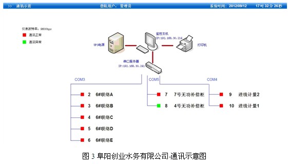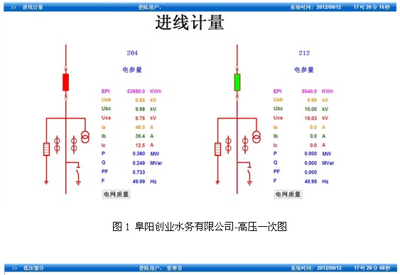安科瑞電氣股份有限公司于2012年8月承接了阜陽創業水務智能配電監控系統項目,為該項目定制的電力監控系統為Acrel-2000。該電力監控系統是在阜陽創業水務有限公司原有變配電柜基礎上增加帶通訊接口的安科瑞多功能網絡電力儀表,將電網用電參數遠傳至監控中心,從而實現集中遠程監控和管理的一個高低壓配電改造項目。通過對現有10KV變配電所實施改造,建立一套比較規范的變配電所電力監控系統,以便于掌握進線供電質量、故障情況、廠內負荷變化等,提高變電所運行的安全性,同時監控中心進行數據采集與存貯、數據統計與分析、數據發布與遠傳;以實時監測電網數據為依據,為阜陽創業水務有限公司的能源監控與節能提供有效手段,實現有效節能并提高能源管理水平。
