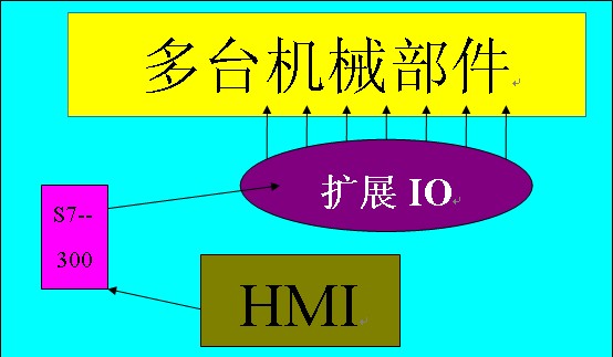 本項目為某鞋業(yè)車間多臺機械集中控制系統(tǒng),客戶要求該系統(tǒng)實現(xiàn)人機監(jiān)控大型鞋機的運行管理,實現(xiàn)現(xiàn)場人機的交互。對于現(xiàn)場的人機交互設(shè)備需求,我們通過HMI與s7-300連接,控制多臺機械部件對應(yīng)各個擴展IO來控制人機的互動!