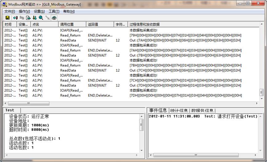 現在可以看到,驅動調度程序顯示通訊信息;如果沒有顯示,重啟工程或點擊菜單,操作->重置所有設備。