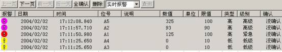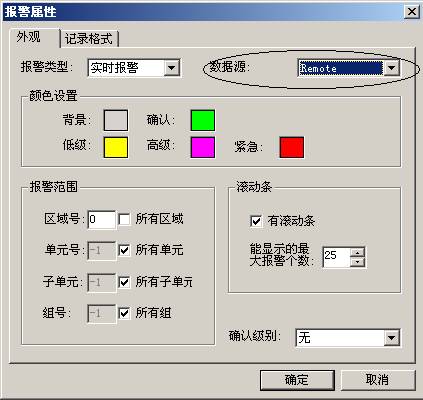 注意數(shù)據(jù)源中選擇的遠(yuǎn)程數(shù)據(jù)源Remote,報(bào)警范圍中選擇的是區(qū)域0。這樣該報(bào)警顯示的將是遠(yuǎn)程數(shù)據(jù)源Remote的區(qū)域0的報(bào)警。運(yùn)行結(jié)果如下: