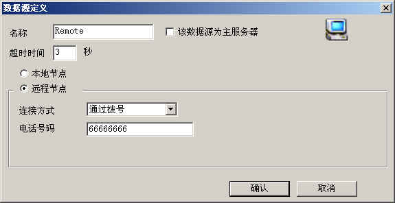 選擇遠程節點,連接方式選擇通過撥號,電話號碼指定的是服務器端使用的電話號碼,而不是本機使用的電話號碼。