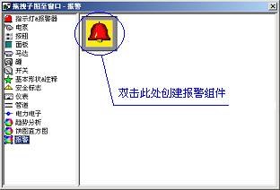 在對話框的左側選擇報警組,并且在右側雙擊圖中所示圖標或托拽該圖標到窗口中,即可在當前窗口中創建報警組件。