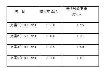 總之,就額定電流和過負荷能力而言,在目前的技術條件下,云廣特高壓直流輸電容量宜在方案3、方案4中選擇。
