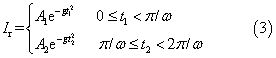 實際測量表明,MOA的阻性電流可用指數波Ae-gt2(其中A是指數波的幅值,g是與指數波的形狀有關的參數)進行曲線擬合?紤]到阻性電流的正、負半波幅值可能不等,故采用分段指數波擬合MOA的阻性電流,其表達式為: