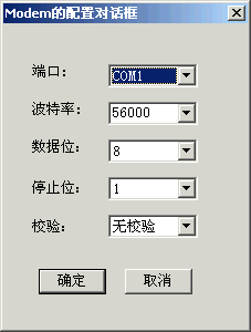 啟動串口客戶端程序TelClient.exe,選擇菜單"文件/配置Modem",進入到Modem配置: