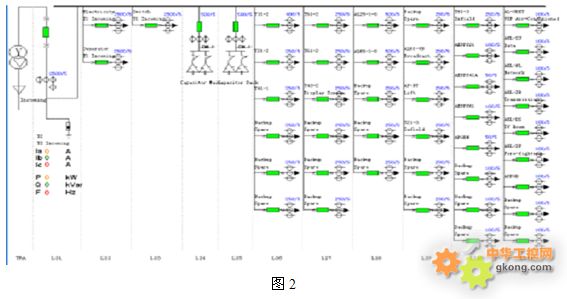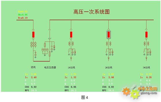 4.1. 一次圖顯示:以一次圖形式直觀動(dòng)態(tài)顯示電壓、電流、功率、功率因數(shù)及頻率等監(jiān)測(cè)信息。如圖2: