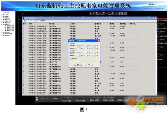 5.4 系統(tǒng)遙信狀態(tài)報警:根據(jù)本系統(tǒng)的設(shè)計意圖,如果重要回路或者照明回路三相中某一相電流負(fù)荷超過額定值的90%,系統(tǒng)必須立刻發(fā)出聲光報警并彈出指示框指明報警源,提醒管理人員注意負(fù)載的三相平衡和負(fù)載率,同時自動記錄事件發(fā)生的時間和回路名稱,以便用戶查詢,追憶故障原因,如圖5: