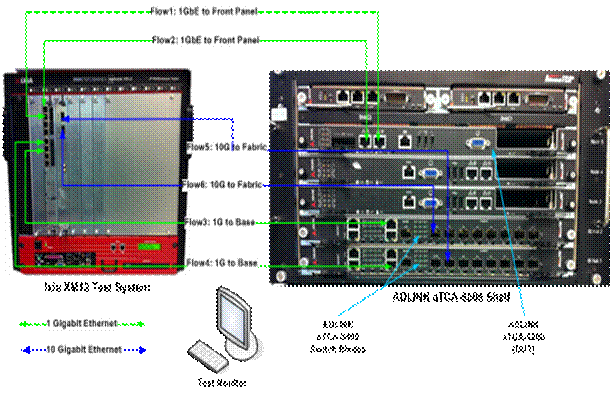 為了測量ATCA處理器刀片在第三層處理和轉(zhuǎn)發(fā)IP包的速度,我們使用圖8中所示的環(huán)境進行測試。