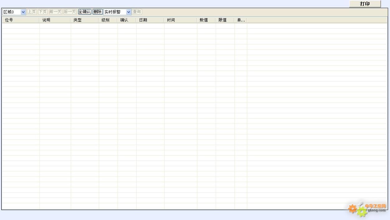 提供關鍵參數的報警功能,實現實時報警的即時顯示和歷史報警的回溯查詢。可以設置報警提示的優先級,提供【報警確認】功能,方便事件認定。報警信息同樣支持打印功能。