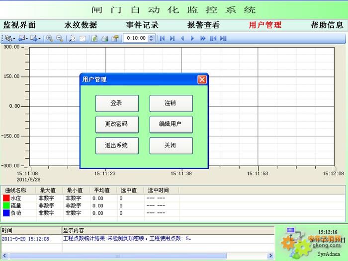 易控監控軟件在船閘集中控制系統和節制閘集中控制系統中對所有設備運行狀態、故障狀態進行記錄,存入數據庫存檔,便于日后檢查;自動建立實時報表、日報表、月報表、故障報表,并打印等;可以對數據庫中的歷史數據進行檢索、傳輸、統計;對數據庫中的數據進行備份。并提供專業的趨勢曲線控件,如實時趨勢曲線、歷史趨勢曲線、XY曲線、計劃曲線、棒圖分析和餅圖分析等能夠繪制行業特定的專業曲線。