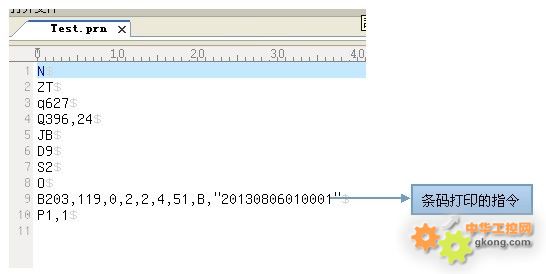 用文本編輯軟件打開Test.Prn內容如下選示:
