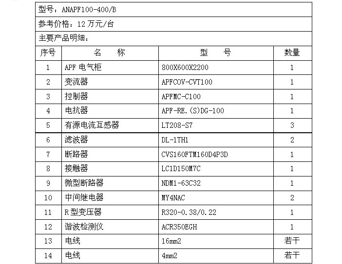 6、 ANAPF低壓有源濾波器報(bào)價(jià)及主要元件清單
