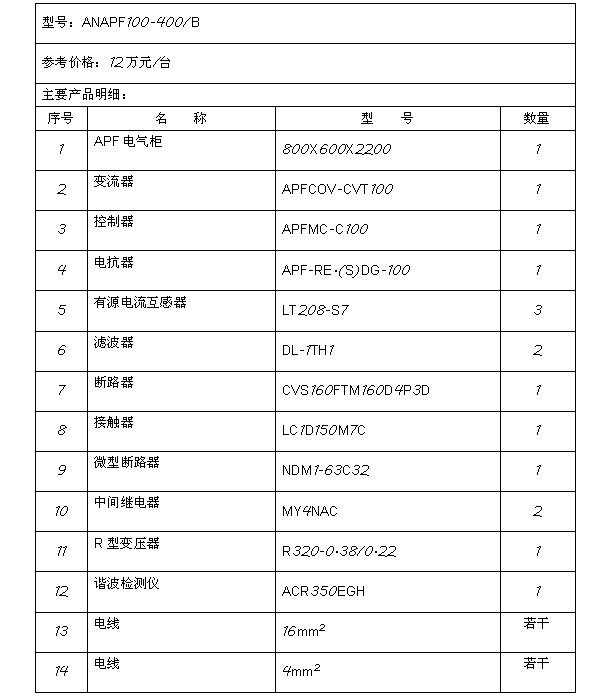 5、ANAPF低壓有源濾波器的報價及主要元件清單