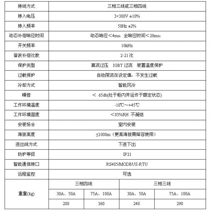 4、ANAPF低壓有源濾波器在LED顯示屏中的應用 某廣場大型戶外LED顯示屏,該顯示屏供電系統有850個30OW的開關電源分布式并聯運行,總功率共計250kw。開關電源是典型的諧波源,在工作時具有電流諧波畸變率高、諧波含量大、諧波頻譜寬、設備為容性負載、功率因數低等用電特性。當大量的開關電源集中使用時會導致中線電流過高,功率因數低,電流諧波畸變率高等現象,從而影響了LED顯示屏正常工作。 4.1諧波治理方案 基于該現場的特點,并聯安裝一臺ANAPF型電力有源濾波器,設備參數如下:
