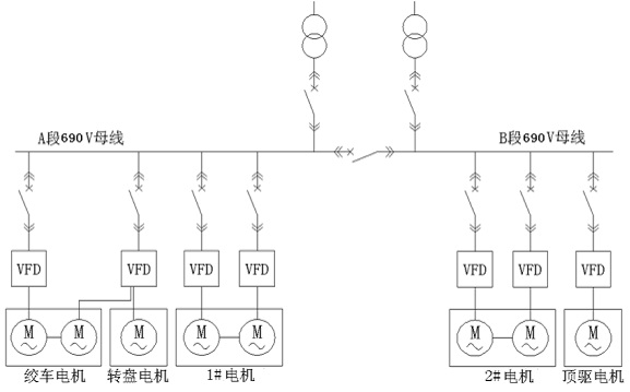 4.1 項目背景 寶山羅涇碼頭自投入運行以來,港口的裝車吊機經常無故損壞,變頻器經常被燒毀,皮帶秤計量似乎也不準確,已經嚴重地影響了港口的正常運行,帶來嚴重的負面經濟效益。調查發現港口配電系統中裝有大量的變頻器,這些變頻器帶動驅動器從而使裝車吊機前后移動。變頻器是典型的諧波源,產生大量的諧波,而且此類工程的負載容量通常都比較大,在交流側存在著很嚴重的諧波污染,正是諧波導致了羅涇碼頭的問題。 因為該碼頭裝有大量的裝車吊機,負載波動比較大,而諧波量的大小和負載率有著密切聯系。在負載率在一定的范圍內變化時,諧波電流有可能極大,在這種情況下系統的電壓會產生很大畸變。這將會嚴重影響電機的正常運轉,同時還會大大縮短變壓器的使用壽命。此外配電系統中還有皮帶秤和其他負載,皮帶秤是敏感設備,變頻器產生的諧波會通過傳導、感應等方式對皮帶秤控制系統產生諧波污染,進而導致皮帶秤工作抖動,影響計量準確度,同時對設備的壽命、安全運行產生不利的影響,也給港口的經濟效益帶來了影響。 寶山羅涇碼頭變頻供電系統簡圖見圖1。