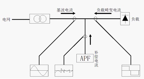 近年來,許多廠礦企業(yè)大量使用可控硅整流和換流設(shè)備、電弧爐、中頻爐等諧波干擾源負荷設(shè)備,這些設(shè)備在吸收大量無功功率、降低用戶的功率因數(shù)的同時,也使諧波問題日趨嚴重。根據(jù)電力工業(yè)電能質(zhì)量方面的標準及管理規(guī)定,各地供電部門出臺了相應的諧波限制準則及措施,并對諧波污染嚴重的企事業(yè)單位進行考核和治理。因此,濾除諧波、提高功率因數(shù)、延長設(shè)備壽命是這類企業(yè)節(jié)能降耗、提高生產(chǎn)效益和產(chǎn)品質(zhì)量的當務之急。 傳統(tǒng)的諧波抑制和無功補償方法是采用由電感和電容構(gòu)成的無源濾波裝置,該裝置與需補償?shù)姆蔷性負載并聯(lián),在為諧波提供低阻通路的同時,也為負載提供了所需的無功功率。雖然無源濾波裝置具有簡單、方便的優(yōu)點,但它也存在許多缺點。 有源電力濾波(active power filter,APF)裝置不僅可減小占地面積,而且可有效解決無源濾波裝置存在的問題。有源濾波與無源濾波存在著本質(zhì)區(qū)別,它是根據(jù)動態(tài)補償諧波的原理,應用現(xiàn)代電力電子器件和計算機技術(shù),快速跟蹤諧波產(chǎn)生的諧波大小和特性,由裝置發(fā)出相應頻率的反向電流,從而達到同時濾除多種成分諧波的目的。它一般由電子電力變流器構(gòu)成,具有半導體功率變流器的高可控性和快速響應性。 1、ANAPF低壓有源濾波器在工廠中的應用案例 1.1項目簡介 秦皇島某電子有限公司配電系統(tǒng)中接有5套整流變壓器,主要給10個熔化中頻電爐供電。該類設(shè)備采用12脈波晶閘管整流方式,在生產(chǎn)過程中產(chǎn)生嚴重的非正弦畸變和大量高次諧波,對自身配電系統(tǒng)和公共電網(wǎng)造成嚴重干擾。同時,由于該非線性負載為感性的,使自身配電系統(tǒng)的功率因數(shù)惡化,10kV進線側(cè)11次和13次諧波電流超出國家標準要求,進而大大影響了配電系統(tǒng)和公共電網(wǎng)的電能質(zhì)量。如果不進行諧波治理,不僅對該公司自身配電系統(tǒng)造成危害,而且會危及公共電網(wǎng)安全。 1.2 ANAPF濾波裝置原理 ANAPF系列有源電力濾波裝置,以并聯(lián)方式接入電網(wǎng),通過實時檢測負載的諧波和無功分量,采用PWM變流技術(shù),從變流器中產(chǎn)生一個和當前諧波分量和無功分量對應的反向分量并實時注入電力系統(tǒng),從而實現(xiàn)諧波治理和無功補償。 原理如下圖: