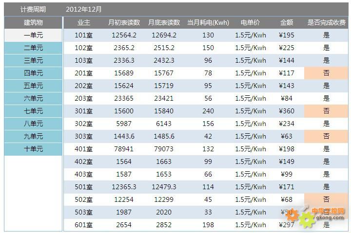 小區(qū)物業(yè)管理人員可以通過系統(tǒng)自動統(tǒng)計每個業(yè)主的用電情況,并按建筑單元自動歸類匯總,統(tǒng)計記錄業(yè)主的繳費記錄,幫助物業(yè)進行收費。