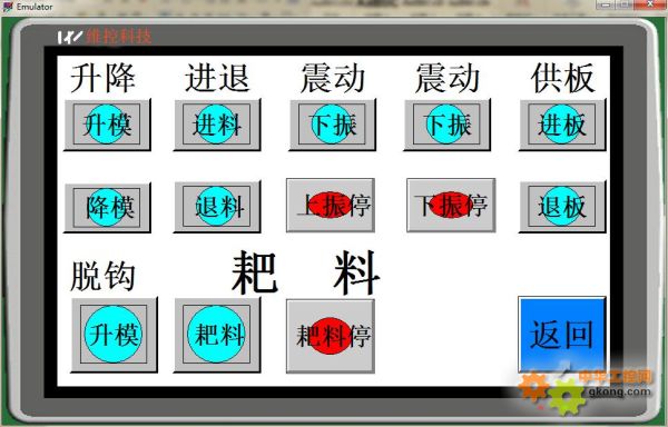 4、手動操作頁面 手動操作頁面可以手動點動控制升降,進退,震動,耙料等。
