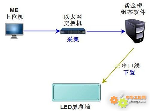天然氣公司六大隊南壓淺冷站,主控室修建了一面LED屏幕墻,顯示淺冷站主要工藝流程,同時顯示10個關鍵參數,包括6個溫度和4個液位。這10個數據需要從主控室現場的上位機中采集,并下置到LED大屏幕上。