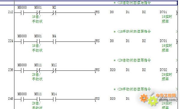 1.PLC和變頻器的mosbus通訊由于是半雙工因此不能同時進行讀寫,程序上需要加以處理。