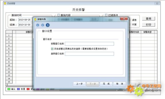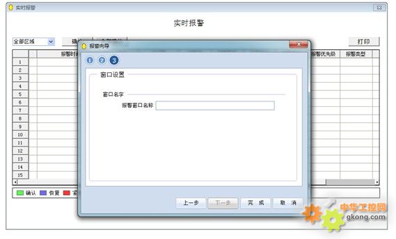 報警向導共分為3個步驟,表格設置、顯示設置和窗口設置。