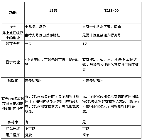 WLSI-00是世龍公司自主開發(fā)的可控制STN320*240以下點陣單色顯示屏廉價新產(chǎn)品,比較1335與WLSI-00性能,將有差異之處列于下表: