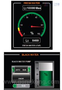 配置工具中現成的對象(如儀表、條形圖和開關)使 Onyx Marine 可輕松創建直觀的界面。