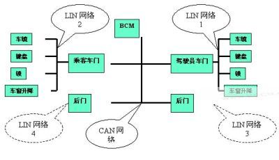 電子車窗包括升、降和防夾控制。車窗升降節點一般是LIN 從節點,有時前車窗模塊同時充當BCM的LIN從節點和后車門的主節點。
