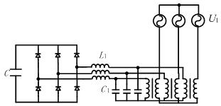 這種結(jié)構(gòu)主要是讓C2和L2構(gòu)成基波諧振,C3承擔(dān)電網(wǎng)電壓,這樣就減小的有源濾波器承擔(dān)的基波電壓和電流。系統(tǒng)注入支路中,由于C2和L2構(gòu)成基波諧振,C3就相當(dāng)于補(bǔ)償無功的電容器,因此系統(tǒng)補(bǔ)償無功的容量也是由C3確定的。
