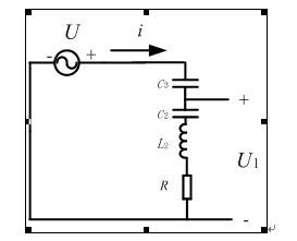 從電網(wǎng)側(cè)考慮整個系統(tǒng),無源電路的單相電路簡化如圖2所示。因為C2和L2構(gòu)成基波諧振電路,R為電感L2的內(nèi)阻,因為有源部分的C1,L1以及逆變器對變壓器電網(wǎng)側(cè)分壓基本沒影響,基本不予考慮。