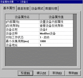 函數主要是設置屬性頁中最小采樣周期以后的設備屬性名(strPropertyName[])、設備屬性名(strPropertyValue[]),和是否有下拉框(bPropertyHasValueArray)。設置下拉菜單用SvrEnumPropertyValue()函數。