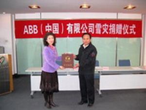 2008年2月4日,全球領先的電力和自動化技術集團ABB今日宣布,通過中國扶貧基金會向中國雪災地區捐款100萬元,把關愛和溫暖送給最需要幫助的貧困災民。