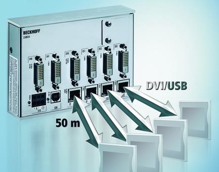 [2008 年 05月 19日,上海] 大型設備和大面積的廠房增加了本地數據查詢的需求。Beckhoff 公司推出的 CU8810 DVI/USB分配器,外形極為緊湊,為連接多個顯示器提供了多種選項。一臺 PC 可以連接多達 4 個擁有同樣分辨率的顯示器,能夠同時顯示一個相同的畫面或兩個不同的畫面。
