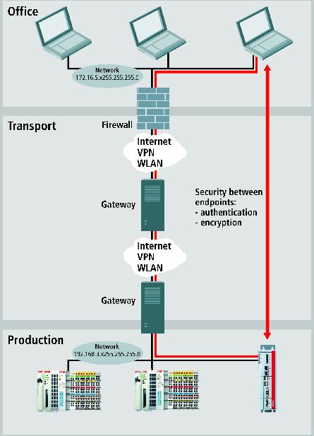 由于網(wǎng)絡(luò)所需要 OPC 配置工作量極小,因此 TwinCAT OPC UA 服務(wù)器的應(yīng)用也非常簡單易懂。只要網(wǎng)絡(luò)中有一臺 PLC 可用,就能夠?qū)崿F(xiàn)直接的 UA TCP 通訊。UA 服務(wù)器檢測 PLC 程序中識別 UA 訪問的變量并在網(wǎng)絡(luò)中激活這些變量。除了標(biāo)準(zhǔn)化 PLC 過程數(shù)據(jù)的交換之外,Beckhoff 的 UA 解決方案還可提供設(shè)備特定信息和服務(wù)。用戶可以讀取包括硬件信息在內(nèi)的參數(shù),如平臺和風(fēng)扇轉(zhuǎn)速以及軟件信息(如操作系統(tǒng)版本)、MAC-ID、可用內(nèi)存和屏幕分辨率。Beckhoff 的 UA 客戶端也可與其它 UA 服務(wù)器(如來自其他制造商的控制器,用 TwinCAT 直接集成在數(shù)據(jù)交換中)進(jìn)行通訊。辦公與服務(wù)層之間的數(shù)據(jù)交換通過多個(gè)傳輸網(wǎng)關(guān)實(shí)現(xiàn),直到機(jī)器層。