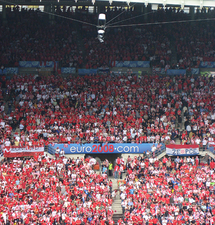 [2008 年 07月 23日,德國] 2008 年 6 月 7 日至 29 日,16 支歐洲頂級足球隊在奧地利和瑞士聯(lián)合舉辦的歐洲足球錦標賽(UEFA European Championship)上集結(jié),在賽場上展開角逐。此次頂級賽事向全球 180 個國家進行現(xiàn)場直播。安裝于賽場上的 SpiderCam® 攝像機器人可全程實時記錄賽事畫面。總共有 4 個歐洲杯足球場安裝了這種尖端的攝像系統(tǒng):維也納的 Ernst Happel 體育場,薩爾茨堡的 Wals-Siezenheim 體育場,巴塞爾的 St. Jakob 公園球場,以及日內(nèi)瓦的 Stade de Genève 球場。所有這些攝像系統(tǒng)都由 Beckhoff 基于 PC 的控制系統(tǒng)控制。