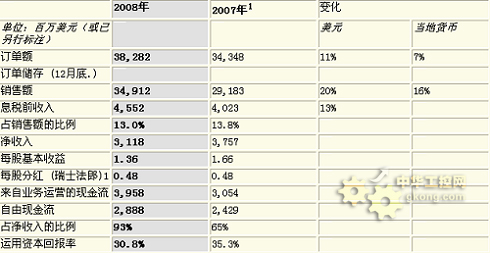 截至2008年12月31日,全年訂單總額達到383億美元,增長11%(按當地貨幣計算為7%),除電力系統業務部外,其他業務部門訂單均實現增長。