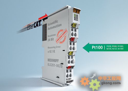 通過 EL3201-0020 EtherCAT 端子模塊實現高精度溫度測量。