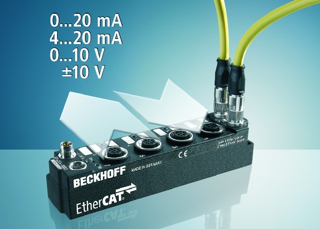[2011年2月22日,德國] Beckhoff 最近推出一款將 2 個模擬量輸入和 2 個模擬量輸出完美結合在一起的全新型 EtherCAT 端子盒 EP4374 ,進一步完善了 IP 67 I/O 模塊的產品系列。I/O 端子盒的組合方式多種多樣,具有高度靈活性,使設備制造商能夠根據自己的具體需求事先進行規劃,因而更加經濟高效。輸入和輸出通道可以針對 0...10 V、±10 V、0...20 mA 和 4...20 mA 等標準信號獨立地進行參數設置。