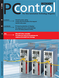 2006年第一期《PC Control》雜志秉承了刊物的一貫宗旨,并集中探討了自動化領(lǐng)域的前沿熱點問題。產(chǎn)品專欄中介紹了Beckhoff新品EtherCAT伺服驅(qū)動AX5000和CP69xx系列控制面板,并深入闡述了TwinSAFE安全自動化模塊系統(tǒng)。應用案例中,我們將看到PC控制技術(shù)為光電企業(yè)OTB的OLED生產(chǎn)制造所來帶的益處,TwinCAT軟件如何幫助米蘭La Scala歌劇院控制舞臺設備,以及BX3100 PROFIBUS DP總線模塊所實現(xiàn)的過程控制等。此外,本期還涵括了PC控制技術(shù)在智能樓宇、焊接冶金、食品加工等方面的應用,并由Josef Papenfort博士就“PLC和單一PC中的運動控制”這一課題發(fā)表了若干心得體會。