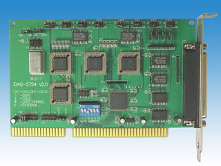 iDAQ-5754 is a general-purpose timer/counter and digital I/O card. It is a compact-size add-on card for IBM AT compatible PC in control, monitoring and sensing applications. iDAQ-5754 has four 8254 chips which results in eight general-purpose 16-bit counters and two 32-bit timer. The counters can be set as independent counters or cascaded counters. The gate control of every counter comes from either external source or internal cascaded counters. The clock source comes from either internal timebase or external inputs, which can be selected by jumper setting. iDAQ-5754 delivers cost-effective and reliable digital output capabilities and are ideal for a broad variety of applications.