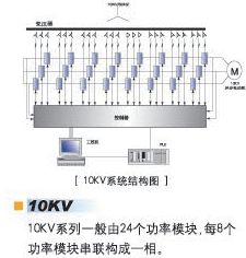 HARSVERT-A系列高壓變頻調(diào)速系統(tǒng)采用單元串聯(lián)多電平技術(shù),屬高-高電壓源型變頻器,直接3、6、10KV輸入,直接3、6、10KV高壓輸出。變頻器主要由移相變壓器、功率模塊和控制器組成。