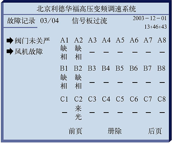 變頻器具有故障定位與查詢功能,輕微故障時變頻器會在主界面,實時提供報警信息,重故障發(fā)生時,變頻器會自動彈出故障界面,向用戶直觀顯示發(fā)生了什么故障,發(fā)生在什么位置。 通過故障界面,用戶可以查詢故障的歷史信息。