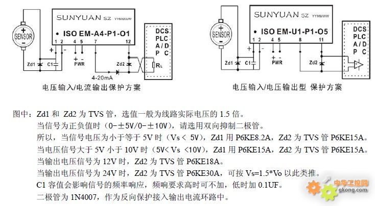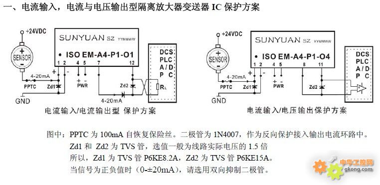 二、電壓輸入,電流與電壓輸出型隔離放大器變送器IC保護方案