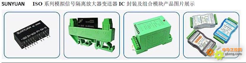 SUNYUAN ISO系列模擬信號隔離放大器變送器IC封裝及組合模塊產品圖片展示: