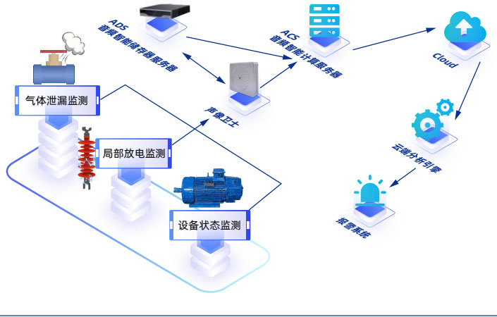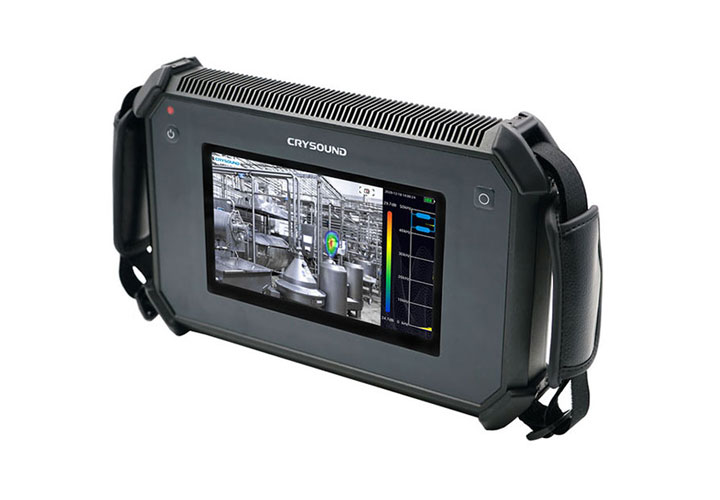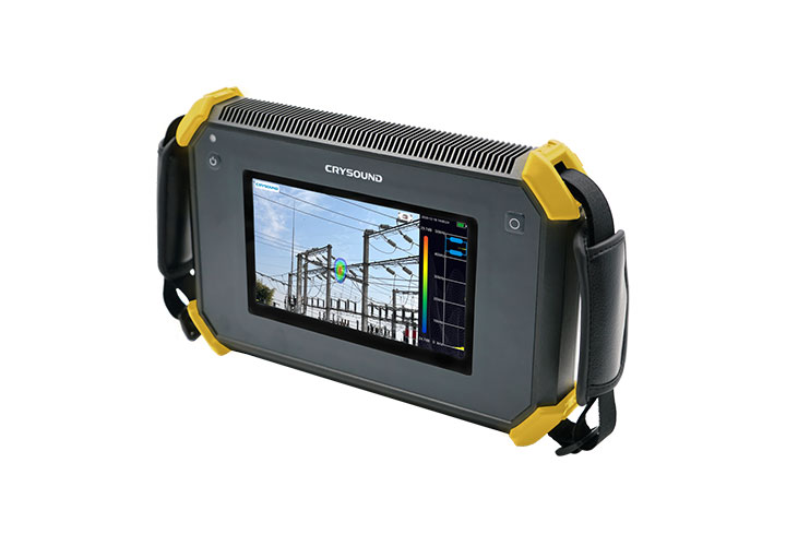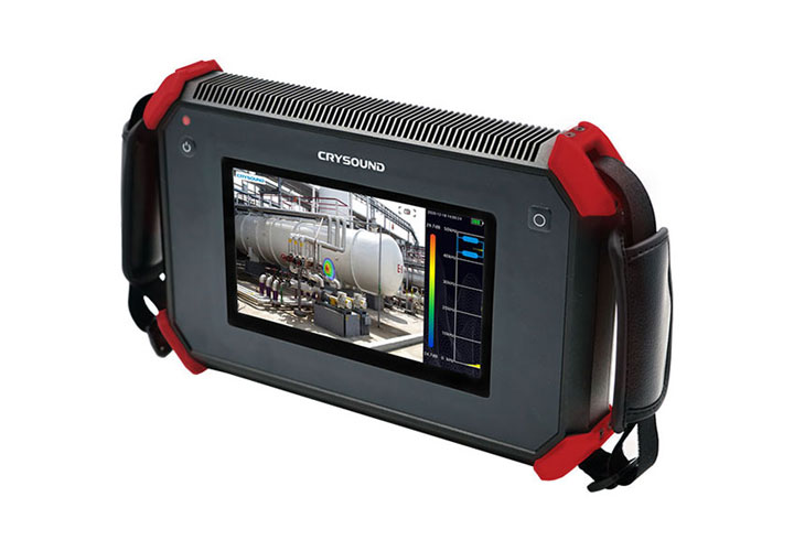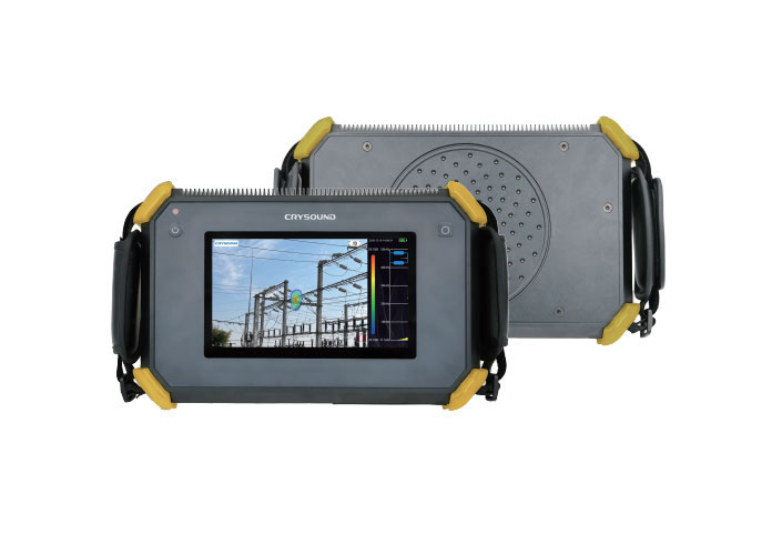 CRY2600系列工業聲學成像儀 利用麥克風陣列技術采集音頻數據,并配合高清攝像頭采集實時畫面。將 陣列音頻數據利用波束形成聲源 定位技術分析后得到聲源分布數據,再將聲源分布數據同視頻畫面進 行融合生成聲像云圖,最終在顯示屏上呈現出聲源動態實現故障可視化。